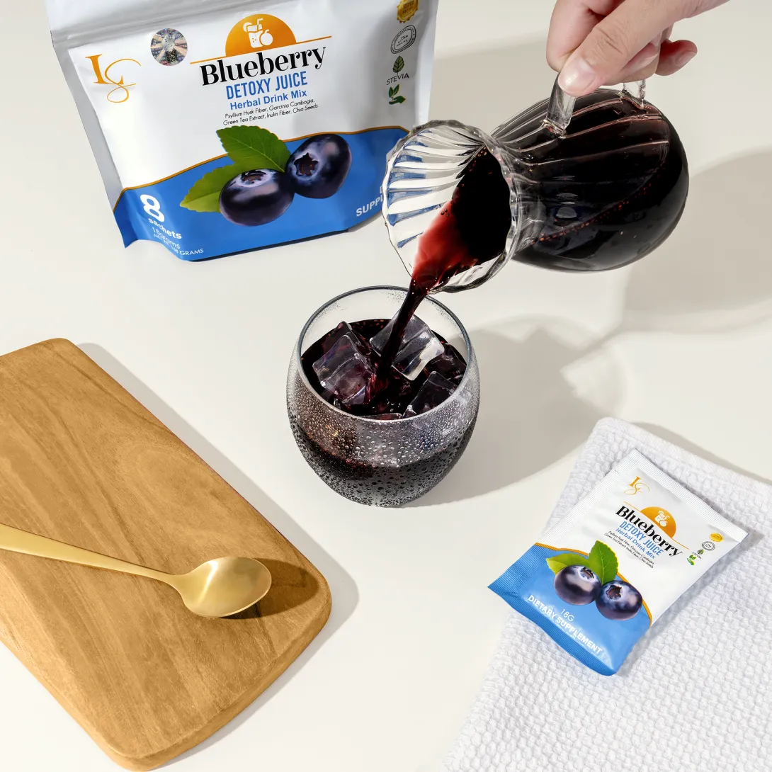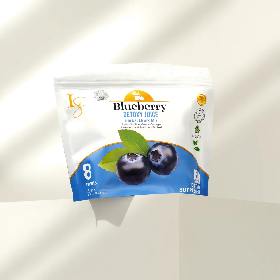 Luxe Slim Blueberry Detoxy Juice is your daily detox and slimming partner, expertly crafted to help flush out toxins, support healthy digestion, and promote natural weight loss. Infused with antioxidant-rich blueberry, fat-burning botanicals, and gentle cleansing fibers, this refreshing blend helps reduce bloating, improve metabolism, and encourage regular bowel movement, leaving you lighter, cleansed, and more radiant from within.